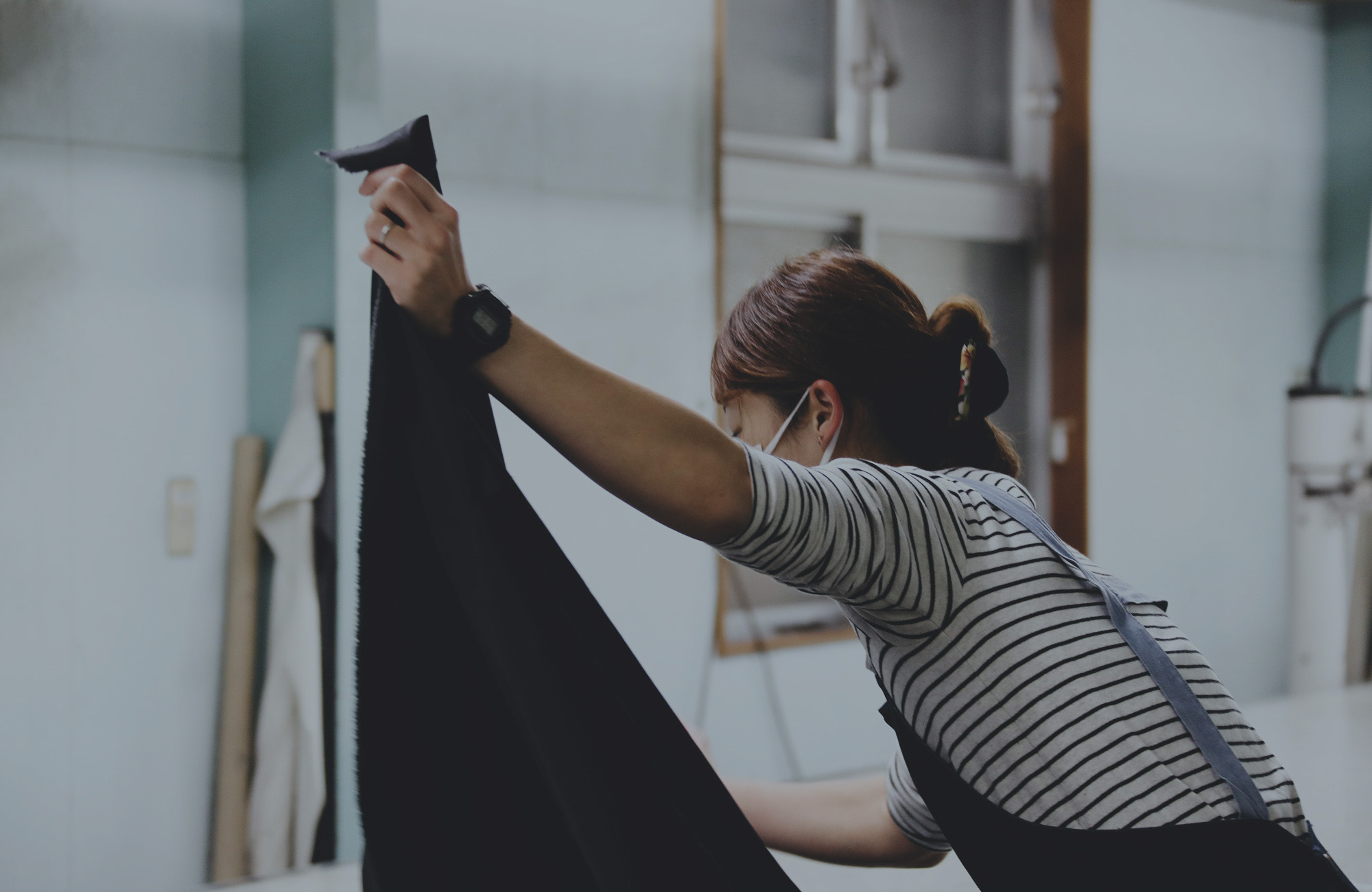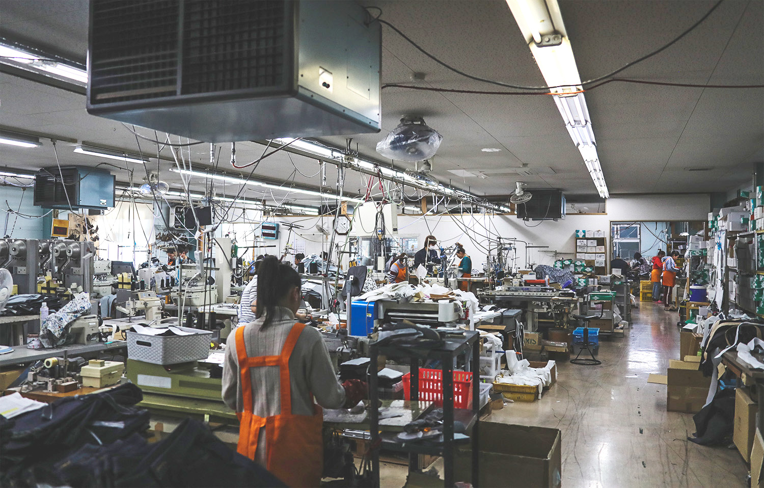 裁断、生地検査、縫製、検査、出荷までの一連の流れをインハウスで一括して行うことにより、納期の短縮と高い品質管理を実現しています。